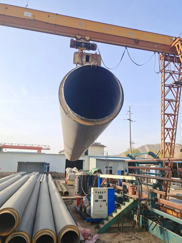 用高壓發(fā)泡機在鋼管與外護層之間形成的空腔中一次性注入硬質(zhì)聚氨酯泡沫塑料原液而成,即俗稱的“管中管發(fā)泡"。